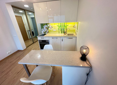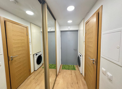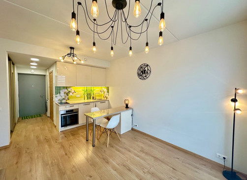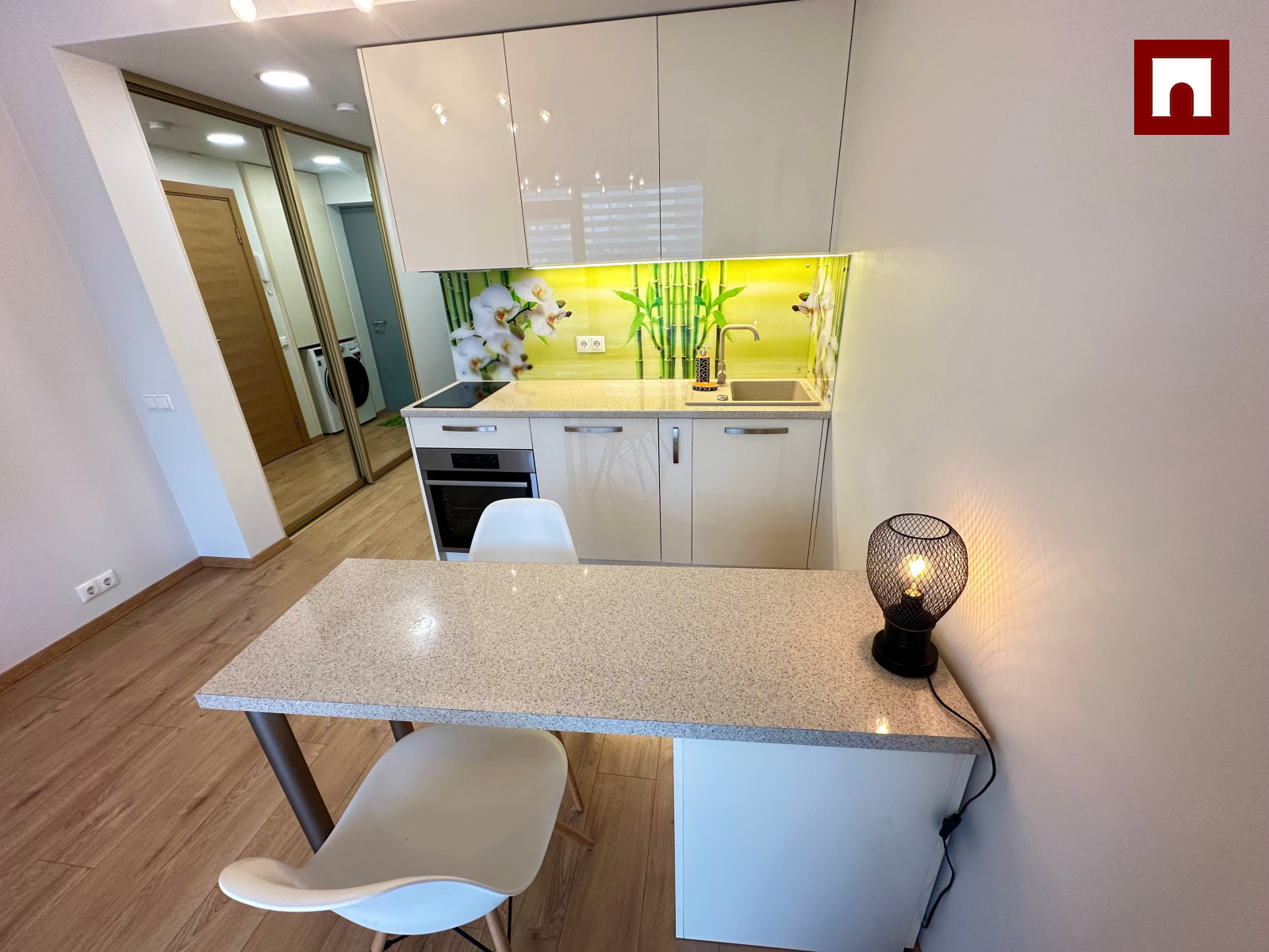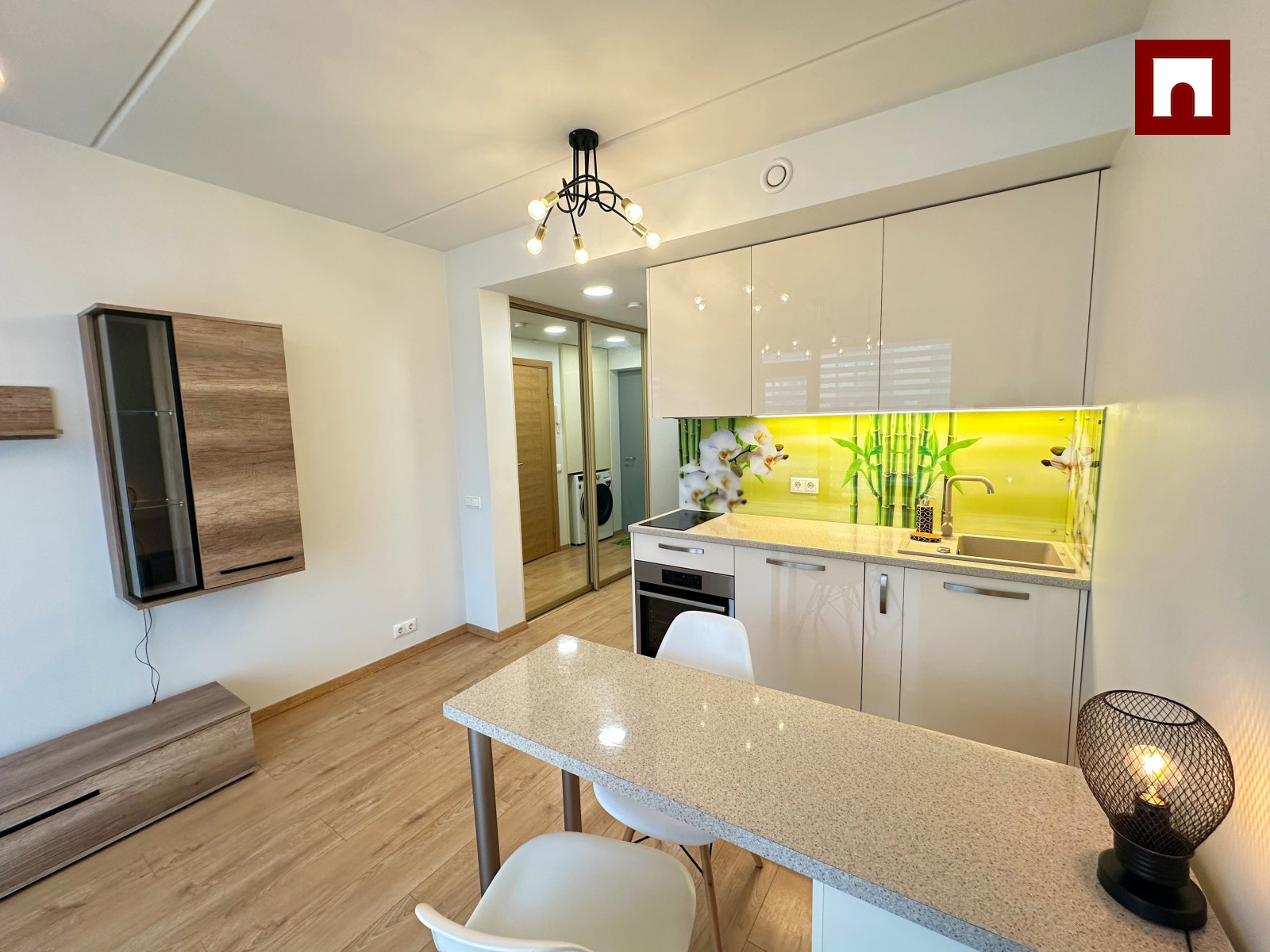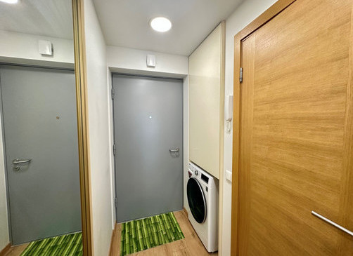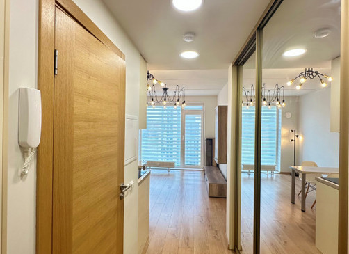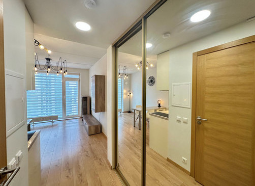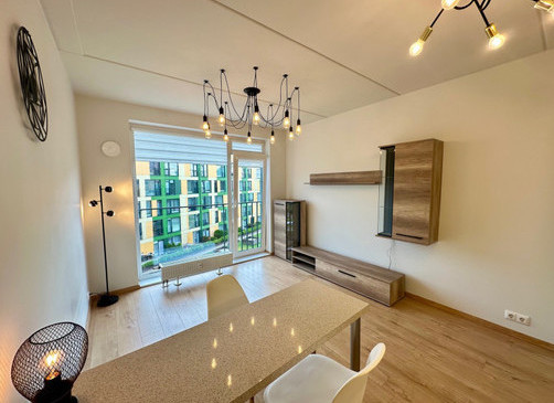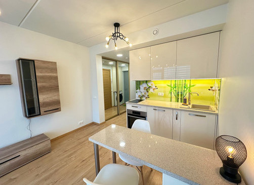 Вблизи Межапарка, на длительный срок в новом проекте на улице Бриежу 9 предлагается в аренду компактная квартира с дизайнерской мебелью, площадью 22.2м2 на 4/6 этаже. Дом находится в очень приятном месте, всего в нескольких минутах сосновый лес- Межапарк, озеро. Вокруг дома огороженная территория, идеально ухоженная территория, со своей детской площадкой и местом для отдыха. Квартира оборудована бытовой техникой AEG, кухней и мебелью. Квартира состоит из гостиной-студио, коридора и ванной комнаты, в которой полы с подогревом. В цену аренды также входит удобная подземная, самая широкая по площади (таких всего две в подземной парковке), в которую Вас доставит лифт. Также в цену аренды входит хранилище площадью 3 м2 и также имеются места для хранения велосипедов. Приоритет проживания в этой квартире- умеренные коммунальные счета 0.59 EUR за м2. В квартире автономное, регулируемое отопление, что значительно сокращает расходы на коммунальные платежи. В квартире установлены большие окна ( c современными двойными жалюзи- день-ночь), входная металлическая дверь. Установлен домофон. Очень хорошо развитая инфраструктура- рядом несколько магазинов, до пляжа в Вецаки всего 9км. Дорога до центра города занимает 15 минут на автомашине, рядом остановка общественного транспорта и электричка.