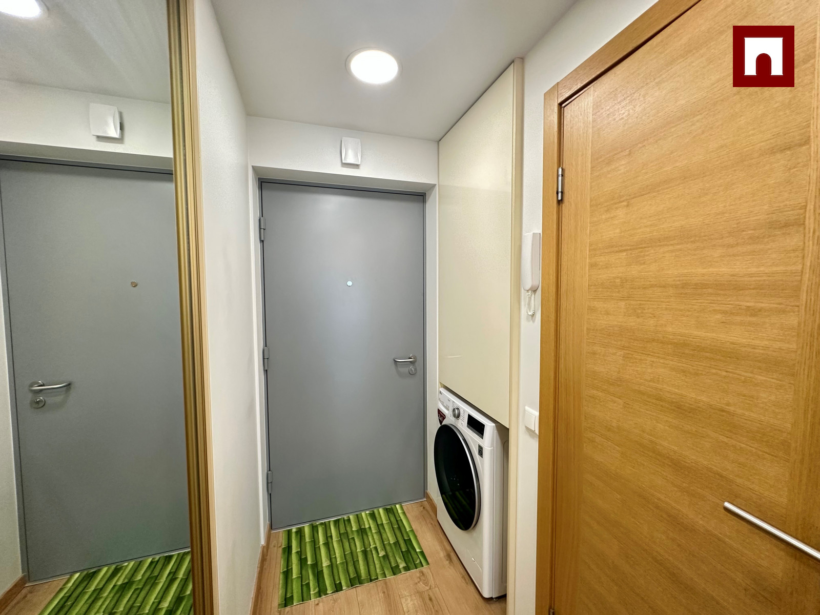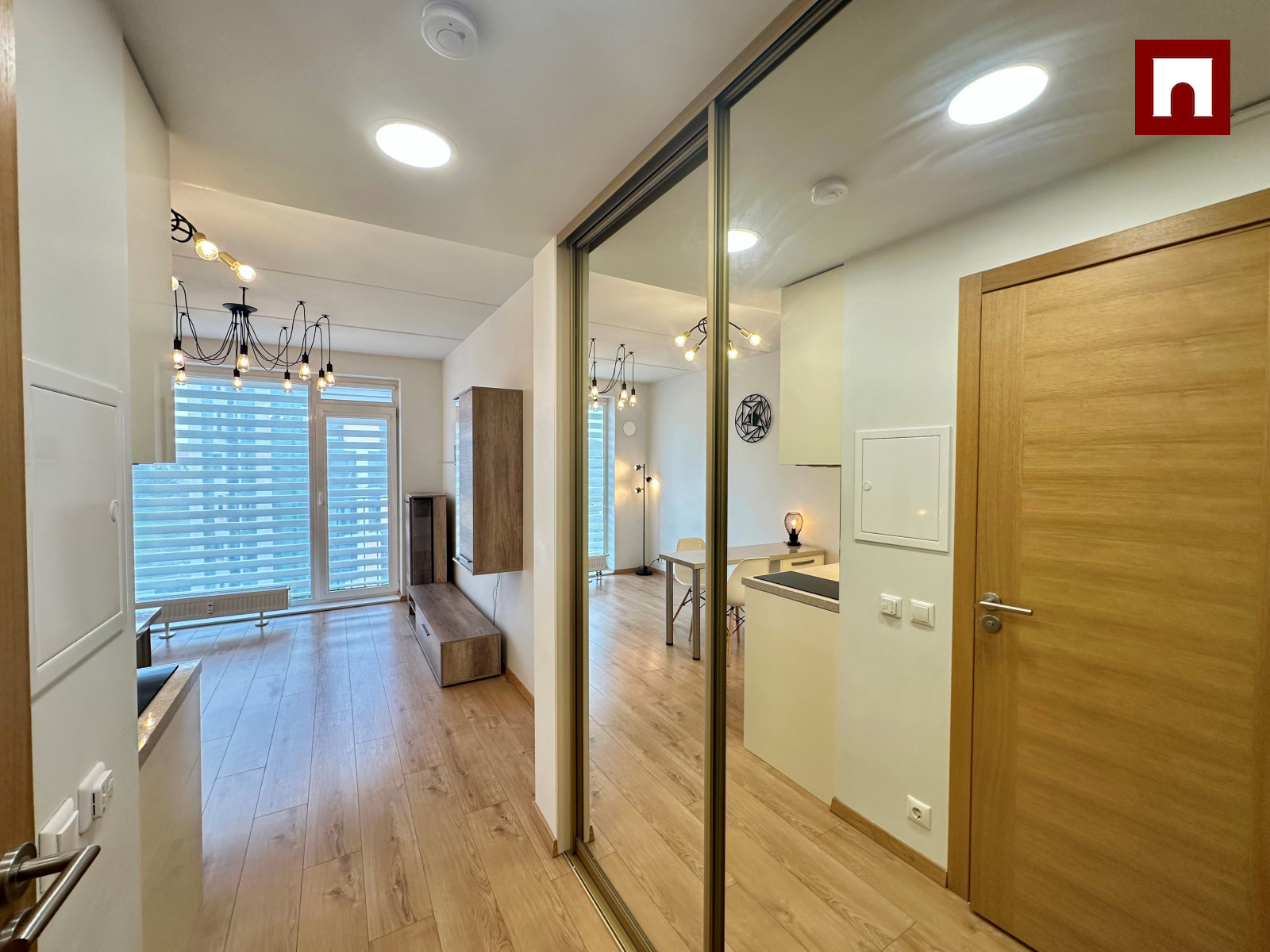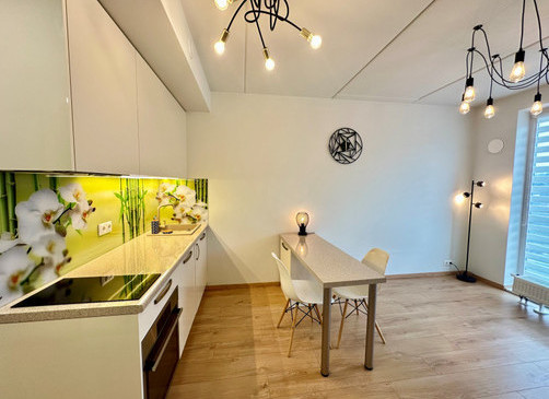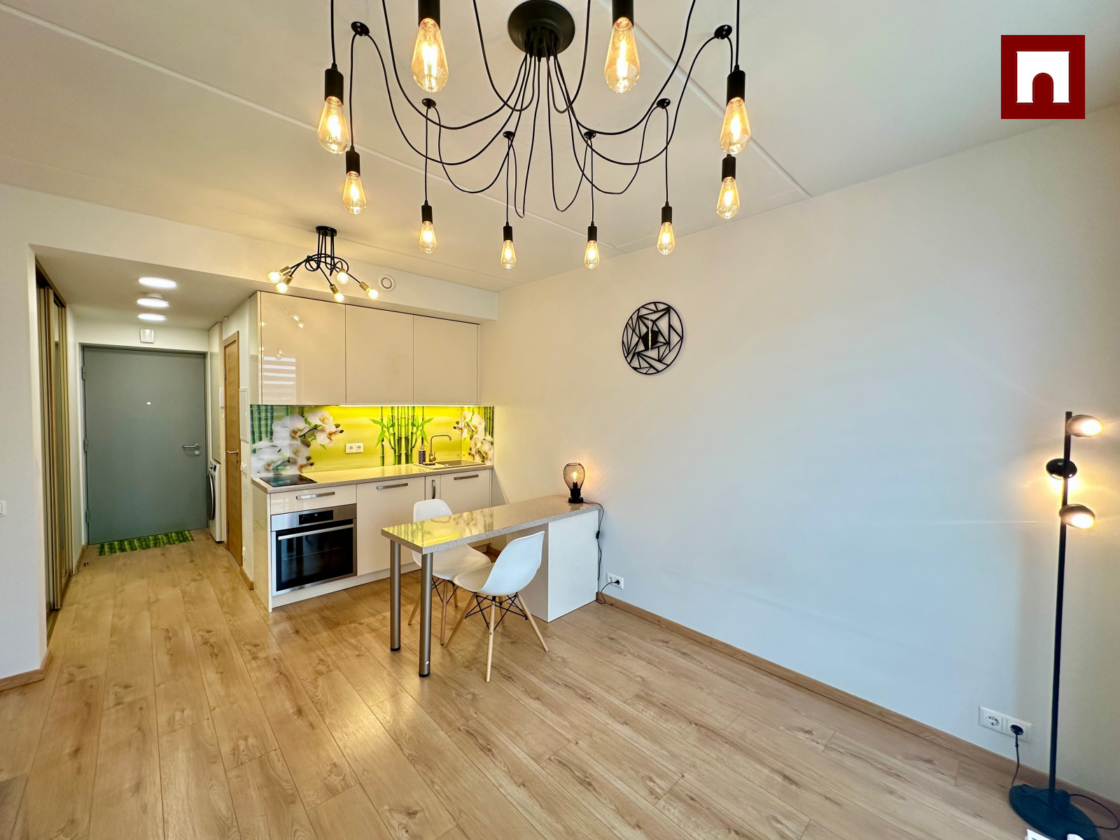 Вблизи Межапарка, на длительный срок в новом проекте на улице Бриежу 9 предлагается в аренду компактная квартира с дизайнерской мебелью, площадью 22.2м2 на 4/6 этаже. Дом находится в очень приятном месте, всего в нескольких минутах сосновый лес- Межапарк, озеро. Вокруг дома огороженная территория, идеально ухоженная территория, со своей детской площадкой и местом для отдыха. Квартира оборудована бытовой техникой AEG, кухней и мебелью. Квартира состоит из гостиной-студио, коридора и ванной комнаты, в которой полы с подогревом. В цену аренды также входит удобная подземная, самая широкая по площади (таких всего две в подземной парковке), в которую Вас доставит лифт. Также в цену аренды входит хранилище площадью 3 м2 и также имеются места для хранения велосипедов. Приоритет проживания в этой квартире- умеренные коммунальные счета 0.59 EUR за м2. В квартире автономное, регулируемое отопление, что значительно сокращает расходы на коммунальные платежи. В квартире установлены большие окна ( c современными двойными жалюзи- день-ночь), входная металлическая дверь. Установлен домофон. Очень хорошо развитая инфраструктура- рядом несколько магазинов, до пляжа в Вецаки всего 9км. Дорога до центра города занимает 15 минут на автомашине, рядом остановка общественного транспорта и электричка.