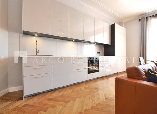 Довоенный дом – высокие потолки, большие окна и при этом совершенно современная отделка, отвечающая всем требованиям современной жизни.
