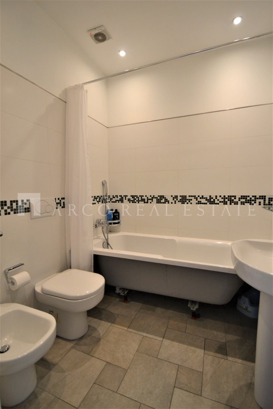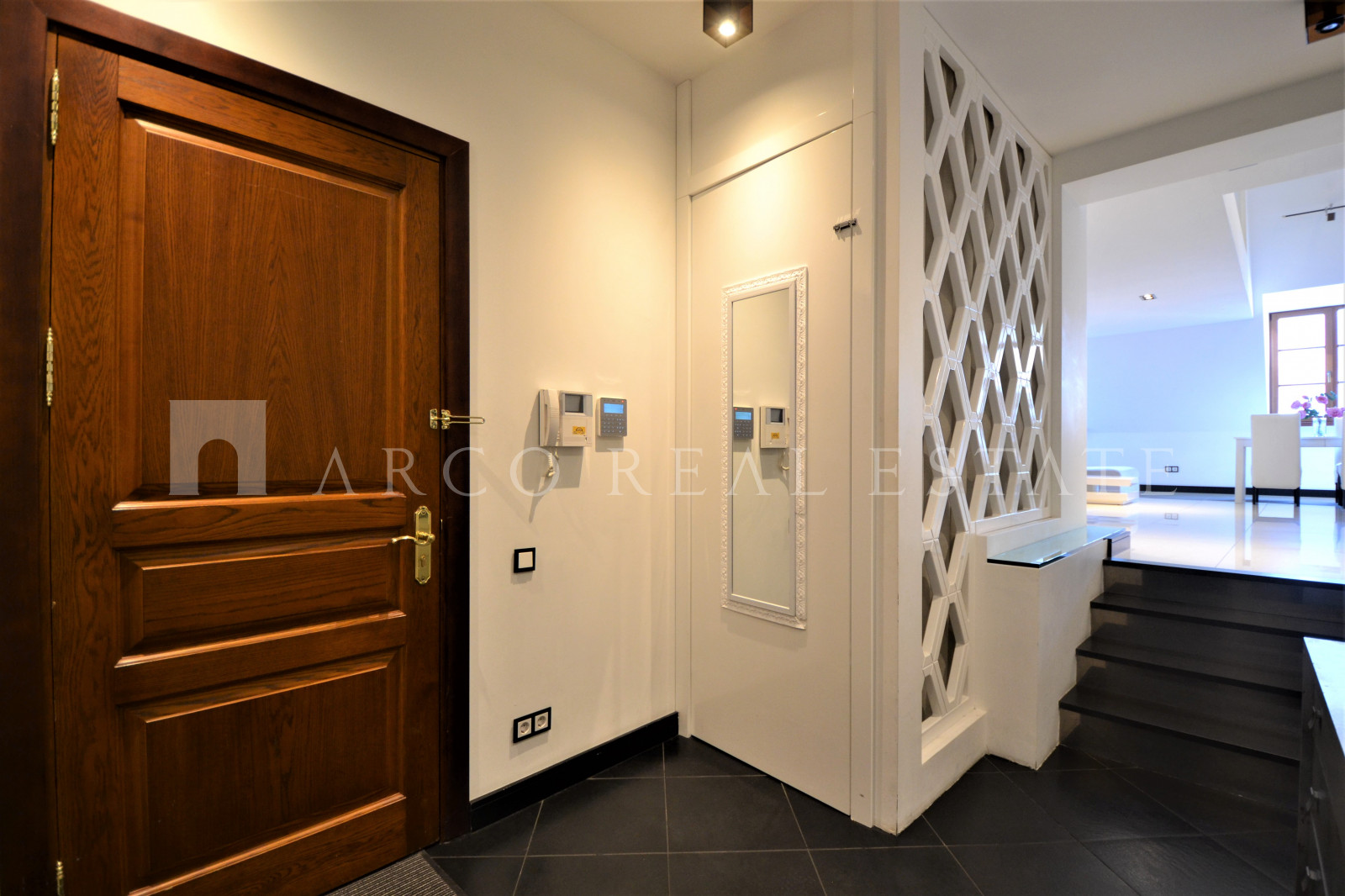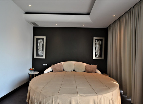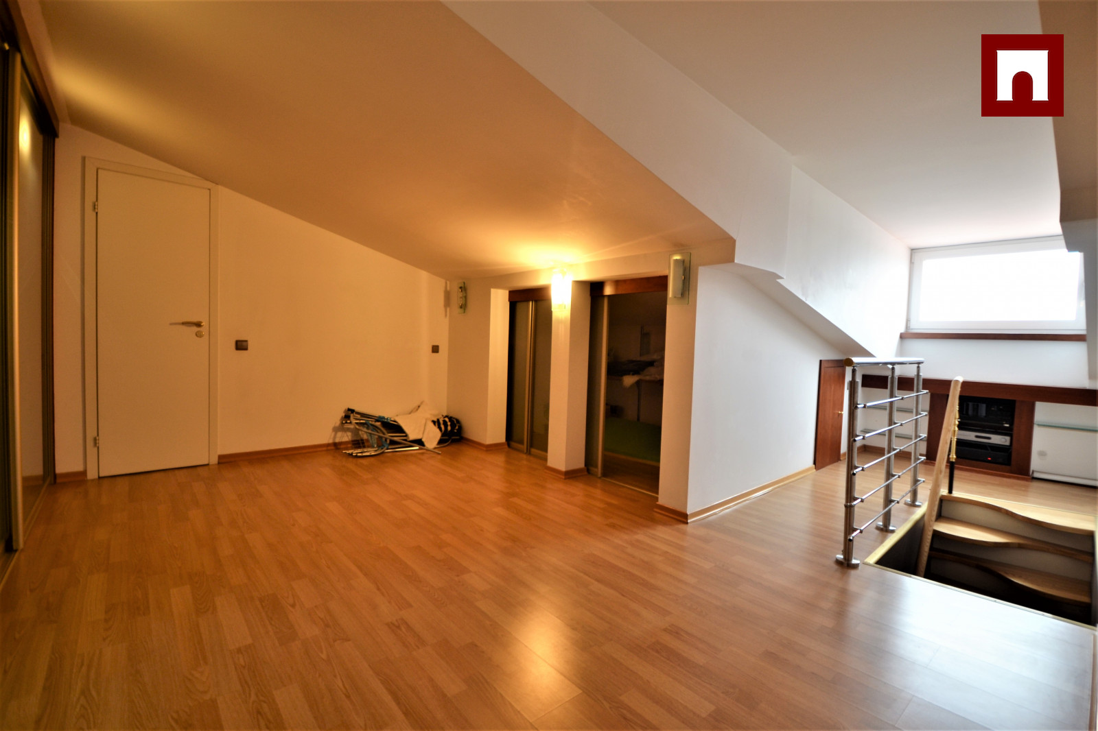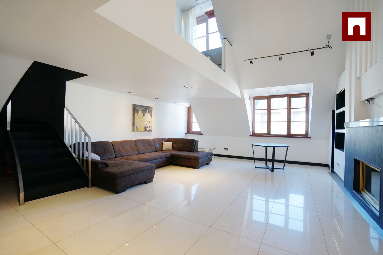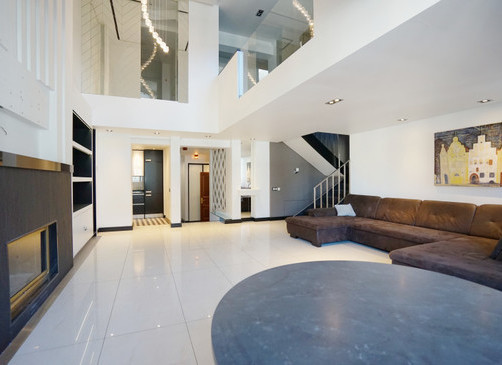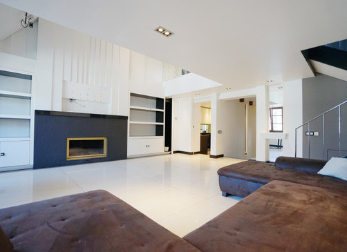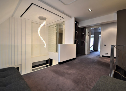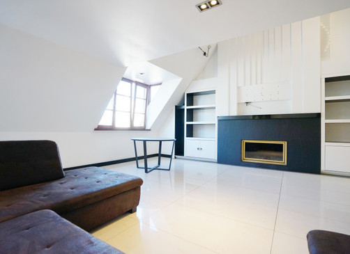 Мансардная квартира имеет 3 этажа, на каждом этаже одна спальня и одна ванная комната. На первом этаже большая гостиная и отдельная кухня.