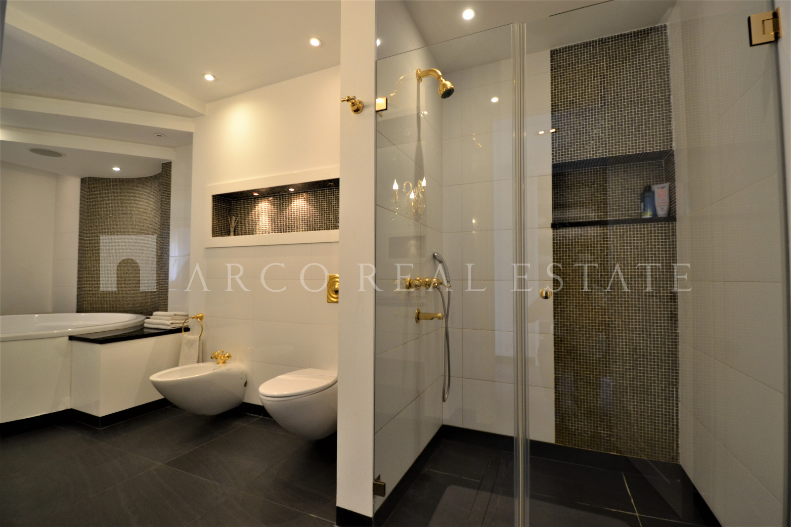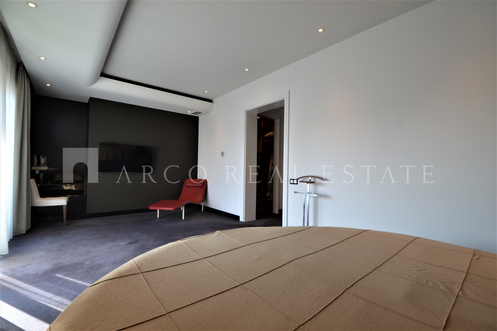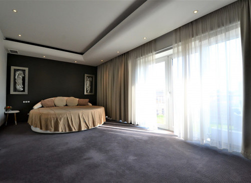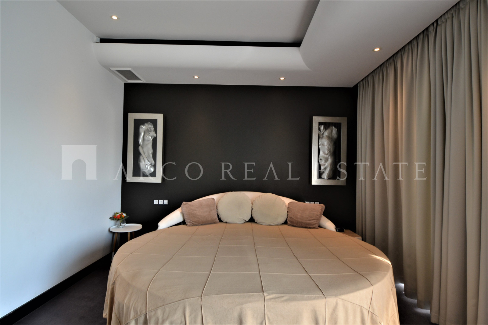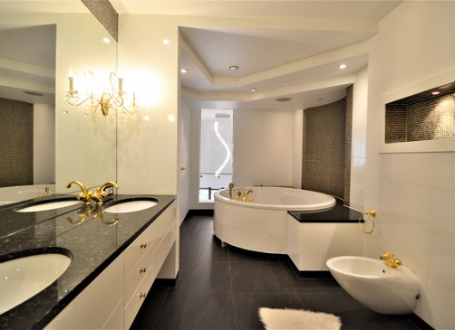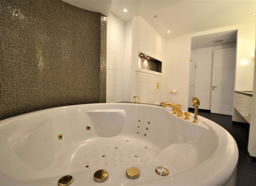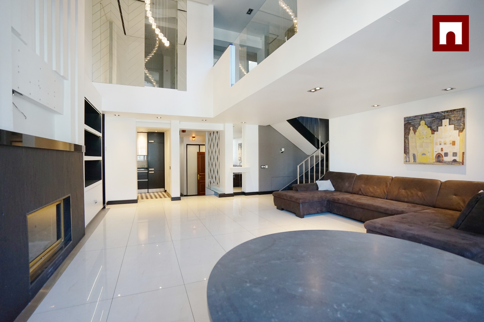 Мансардная квартира имеет 3 этажа, на каждом этаже одна спальня и одна ванная комната. На первом этаже большая гостиная и отдельная кухня.