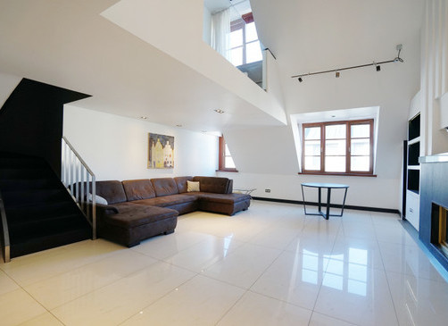 Сдается в аренду элегантная трехэтажная мансардная квартира с тремя спальнями в самом центре Старой Риги на улице Грециниеку 22.